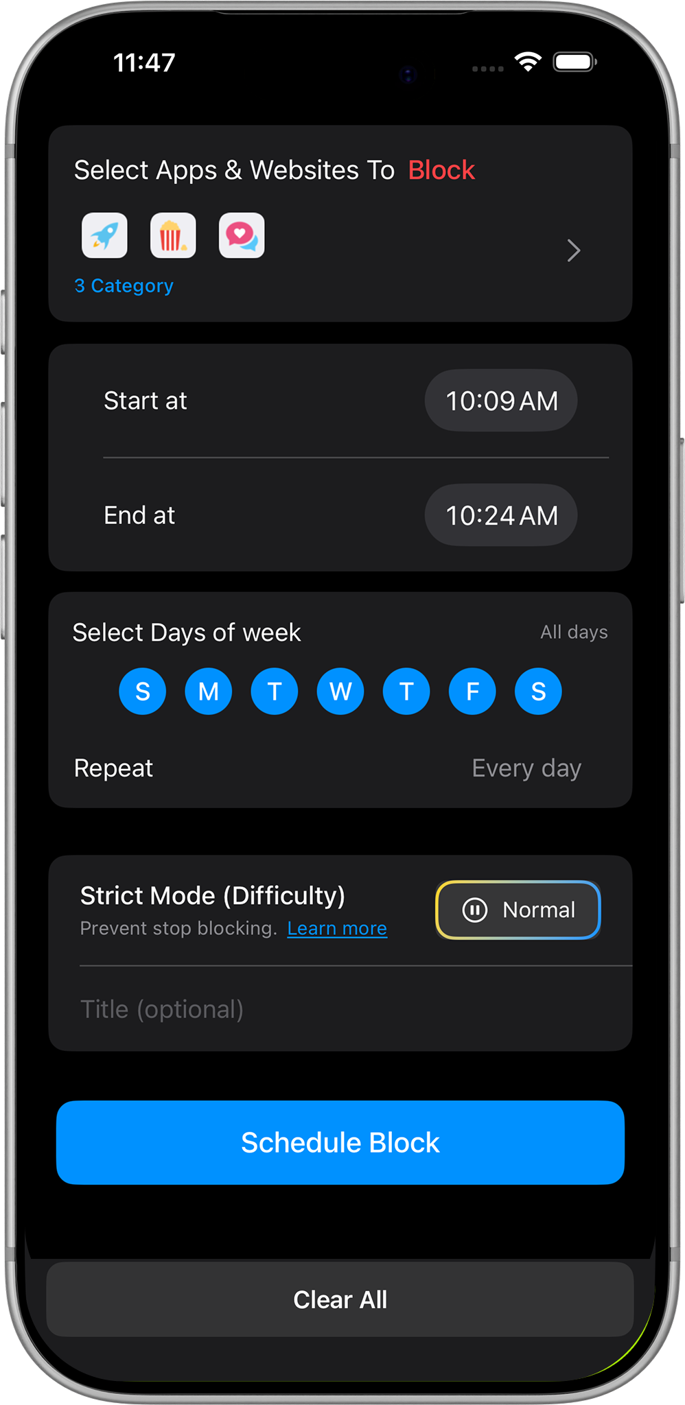 This app helps me control my time. I can easily limit unwanted apps and sites.